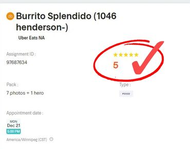 Wornstar Media receives contract photography opportunities from OCUS for their clients which includes Uber Eats, Door Dash & Skip The Dishes.